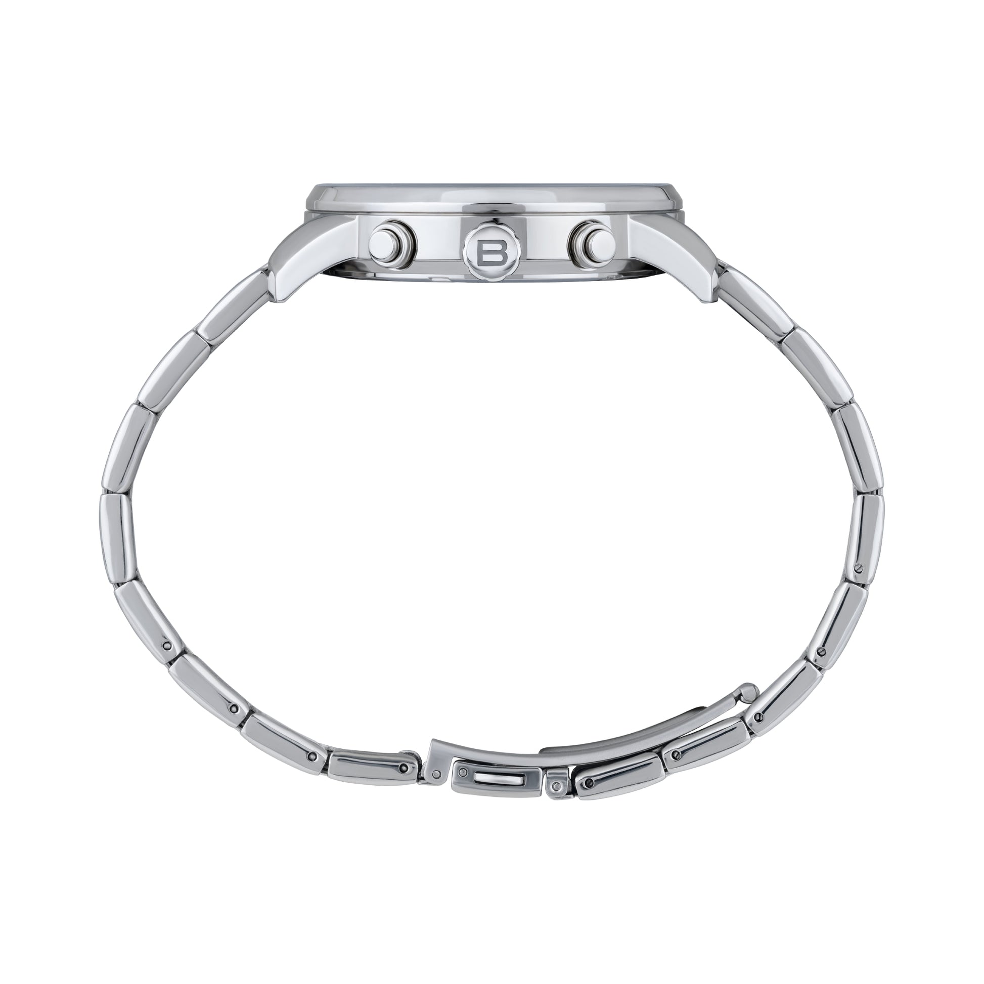 Die Breil Caliber EW0645 ist eine markante Herrenuhr mit einem robusten 43 mm Edelstahlgehäuse und kratzfestem Mineralglas. Sie überzeugt mit einem eleganten blauen Zifferblatt, rosévergoldeten Stabindizes und leuchtenden Zeigern für beste Ablesbarkeit. Der präzise Quarzuhrwerk-Chronograph mit Datumsanzeige macht sie besonders funktional, während das silberfarbene Edelstahlarmband Komfort und Stilsicherheit garantiert. Mit 5 ATM Wasserdichtigkeit eignet sie sich ideal für den Alltag und sportliche Aktivitäten.