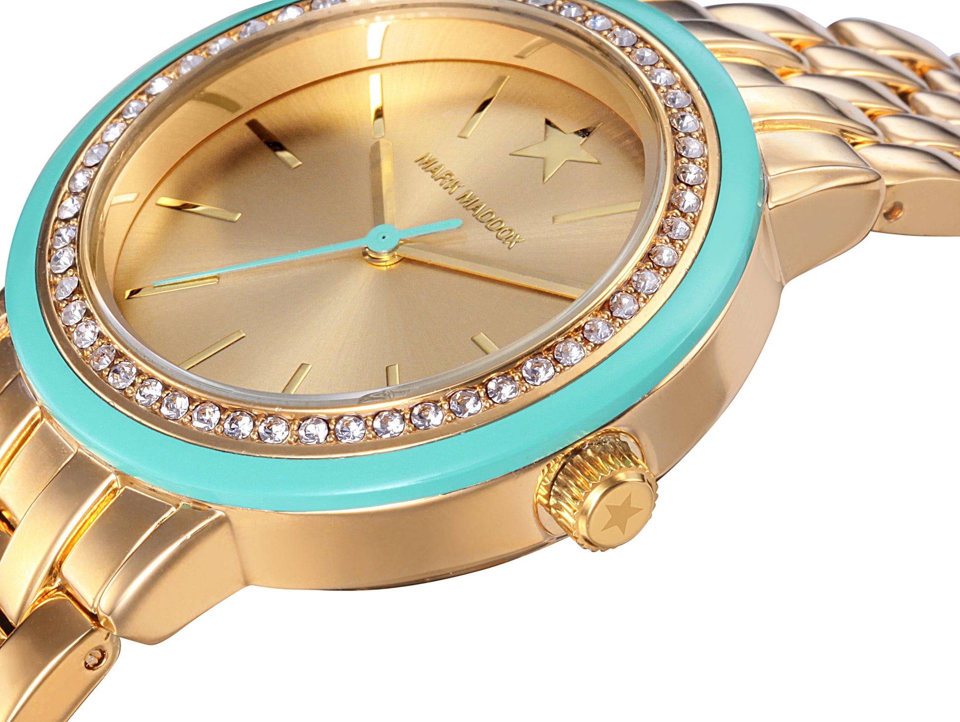 Zeitlose Eleganz trifft auf präzises Quarzuhrwerk: Die Mark Maddox MM7007-27 Damenuhr besticht durch ihr goldenes Metallgehäuse und -armband, das zusammen mit dem goldfarbenen Zifferblatt einen luxuriösen, modernen Look verleiht. Das 34 mm große Gehäuse und das hochwertige Mineralglas bieten optimalen Schutz und exzellente Ablesbarkeit. Ideal für stilbewusste Frauen, die klassische Ästhetik mit Zuverlässigkeit verbinden wollen.