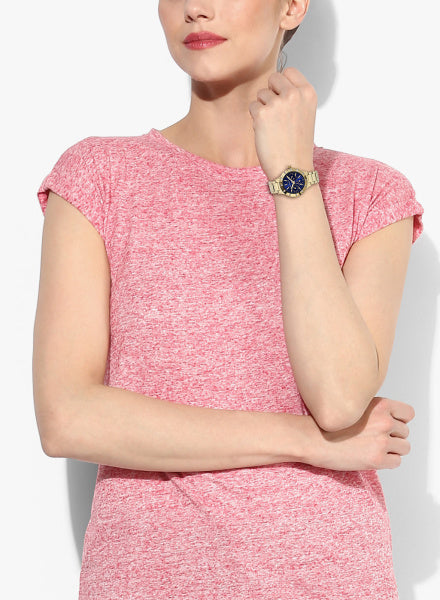 Elegante und moderne Damenuhr Mark Maddox MM7008-37 mit einem goldfarbenen Edelstahlgehäuse und Armband überzeugt durch ihr strahlend blaues Zifferblatt mit präzisem Quarzuhrwerk. Die Uhr bietet mit kratzfestem Mineralglas und 3 ATM Wasserdichtigkeit ideale Alltagstauglichkeit. Perfekt für stilbewusste Frauen, die Funktionalität und Design in einem suchen.